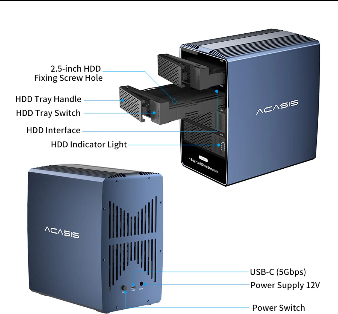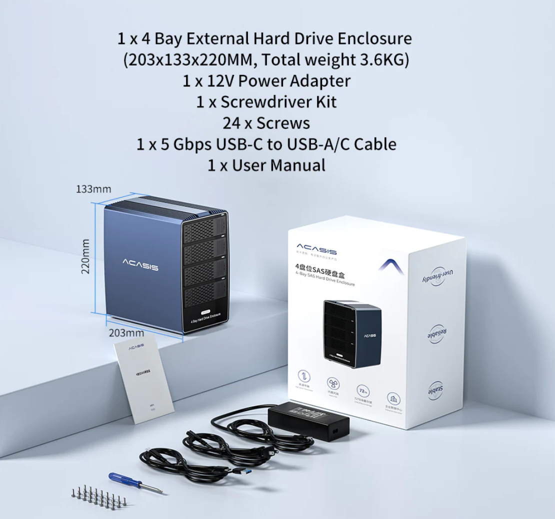 Acasis 4 Bay 2.5/3.5 Inch SATA/SAS to USB 3.0 Hard Drive Enclosure
