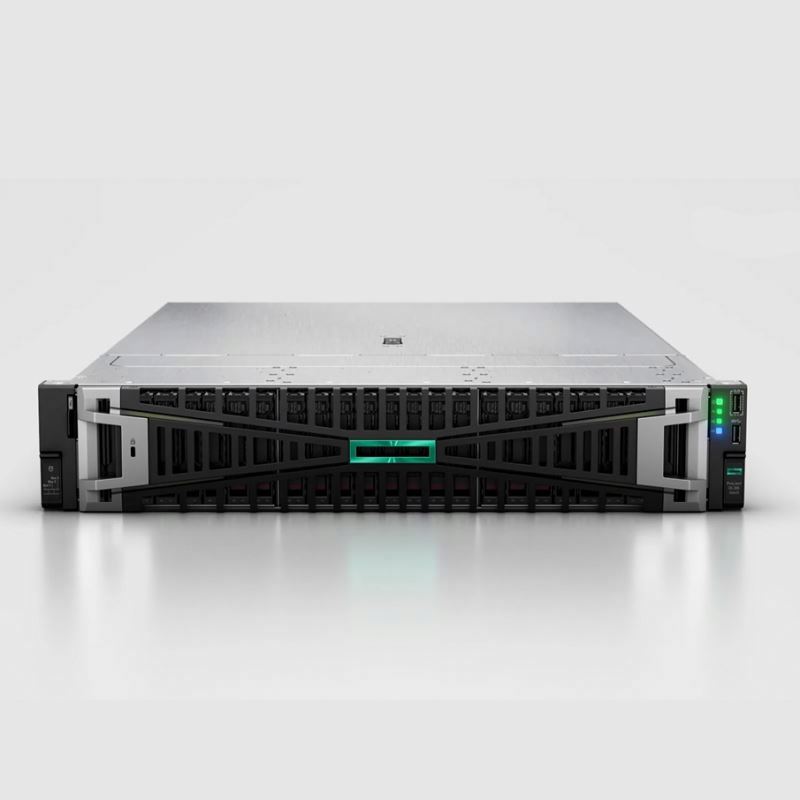 HPE ProLiant DL385 Gen11 server with one AMD EPYC™ 9224 Processor, 32 GB (1×32 GB) Dual Rank Memory, one HPE MR408i-o Gen11 x8 Lanes 4GB Cache OCP SPDM Storage Controller, support for eight SFF drives, four HPE ProLiant DL3X5 Gen11 2U Standard Fan Kits, one HPE