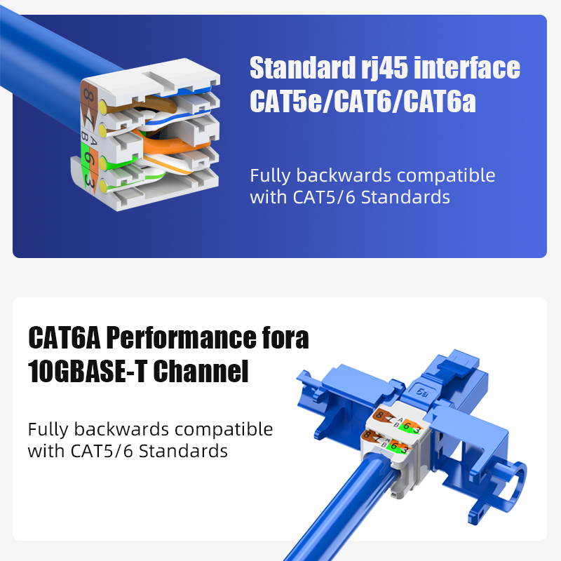 - RJ45 Insert PIN: 8P8C (8 Position, 8 Contact) with gold-plated contacts