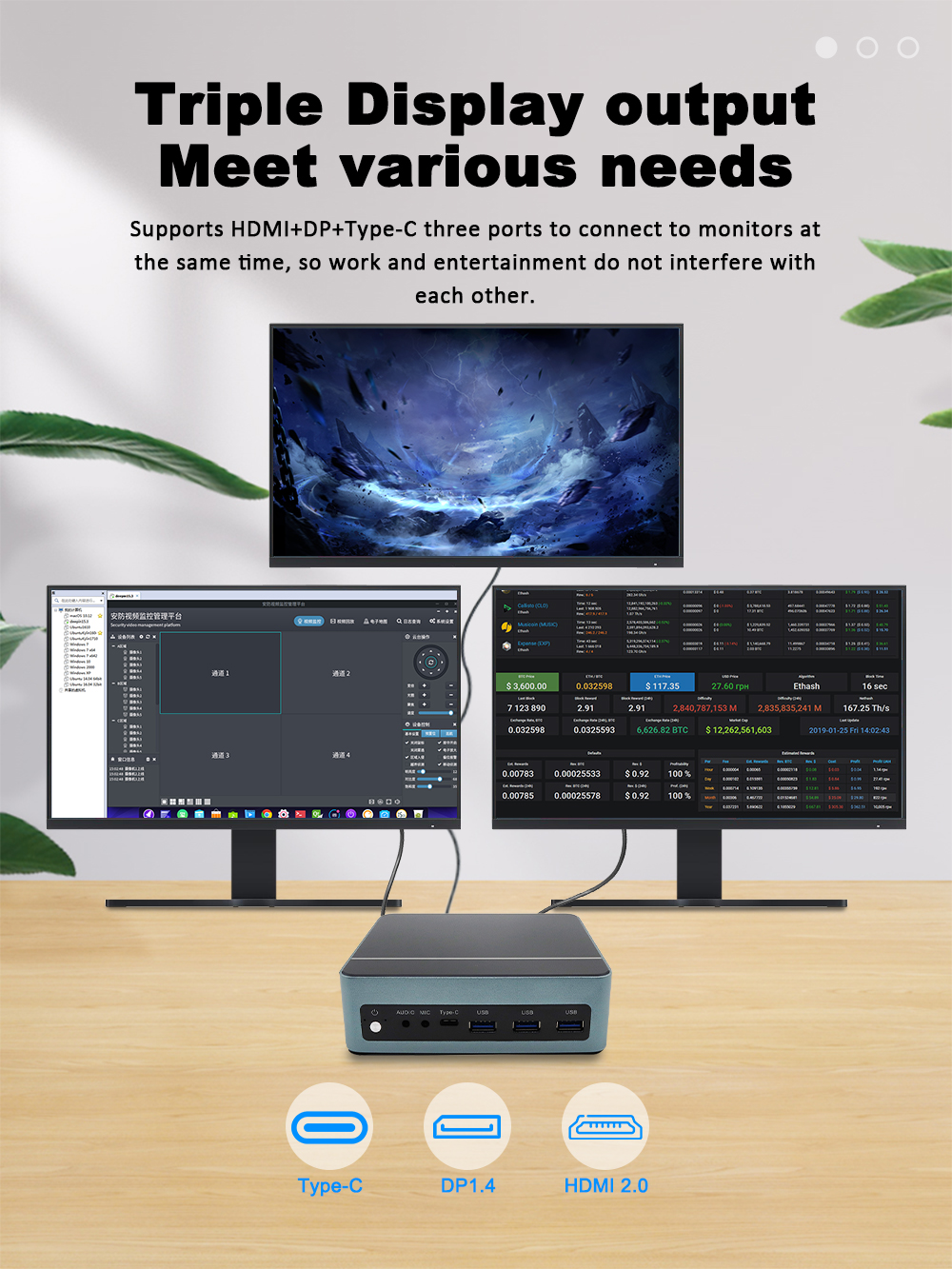 - USB Ports: 3 x USB 3.2 (10Gbps), 2 x USB 2.0, 1 x USB Type-C (Data/Display/PD)