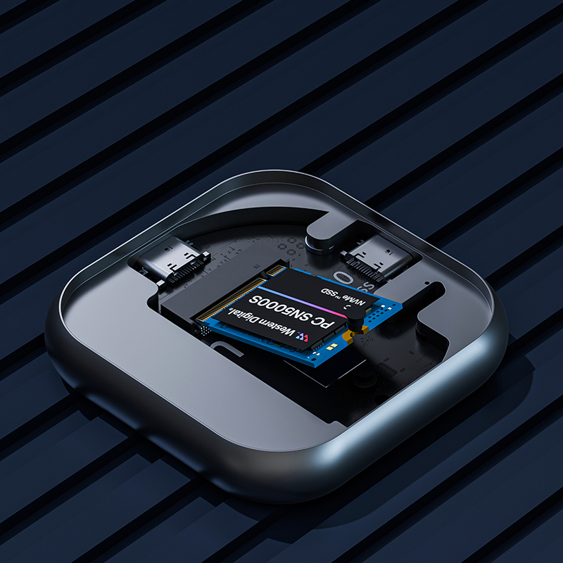 • Aluminum Alloy Construction: The aluminum body helps with dissipating heat generated by the NVMe SSD during operation, preventing throttling and maintaining high speeds.